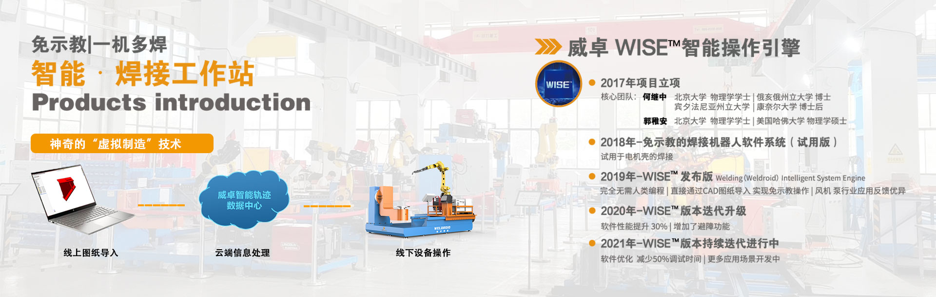 立即咨詢 現(xiàn)在聯(lián)系我們:0510-85384033無(wú)錫威卓智能機(jī)器人有限公司成立于2017年,是無(wú)錫市政府引進(jìn)的科技領(lǐng)軍型高新技術(shù)企業(yè),公司研發(fā)團(tuán)隊(duì)80余人,我們堅(jiān)持自主創(chuàng)新,利用自主開(kāi)發(fā)的虛擬制造技術(shù)對(duì)傳統(tǒng)焊接行業(yè)進(jìn)行升級(jí)改造。 公司主推的工業(yè)風(fēng)機(jī)系列-智能焊接工作站產(chǎn)品,具有免示教、實(shí)時(shí)跟蹤、簡(jiǎn)易工裝、傻瓜式操作等優(yōu)點(diǎn),真正幫助企業(yè)解決了招焊工難,用工成本高,焊接質(zhì)量不穩(wěn)定等問(wèn)題。